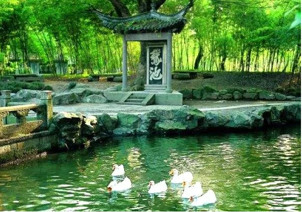 紧邻洗砚池的鹅池,