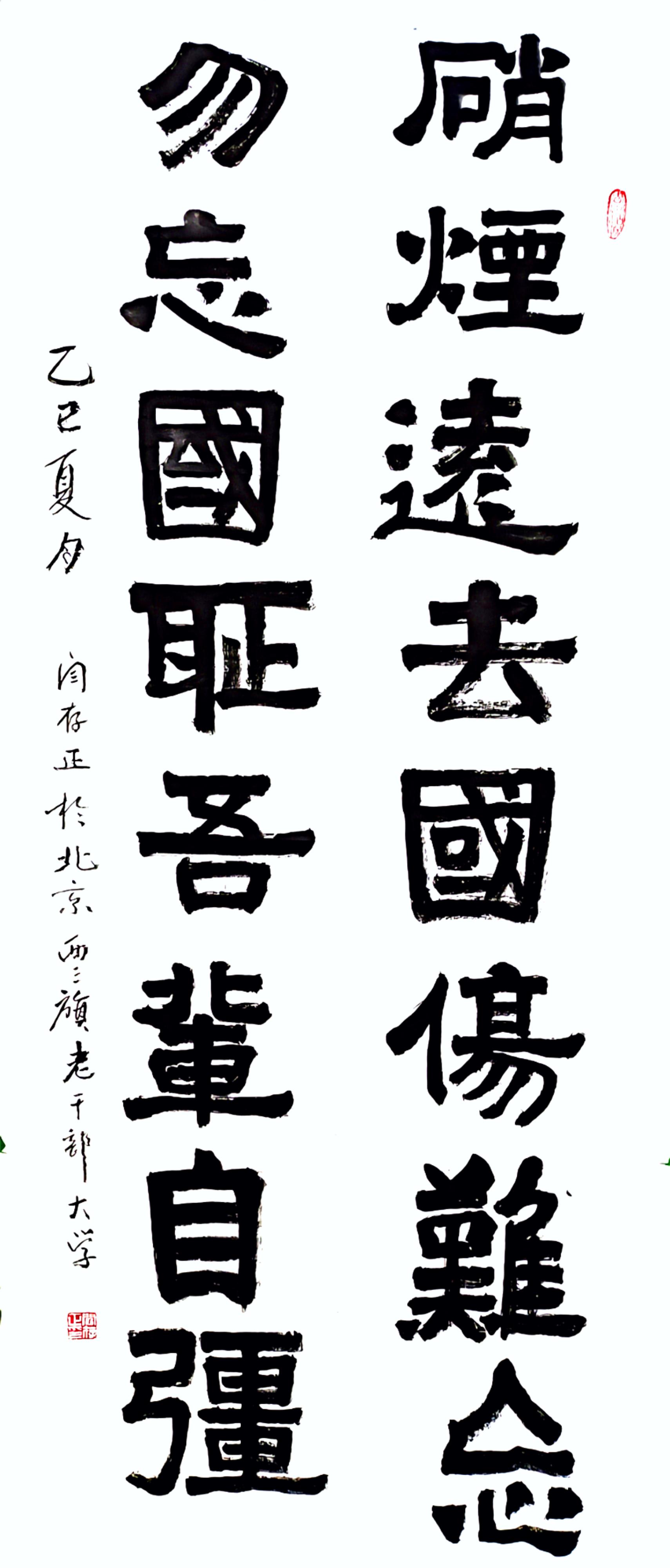 闫存正:86岁,正师级军队退伍,退休后被总装备部聘任为老干部大学校长,义务为四倍多名离退休干部服务二十三年。同时同时研习书画诗词二十三年。参加全国各地书画展60多次,被吴门八雅书画院任命为北京分院院长,北京老年书画研究会会员。