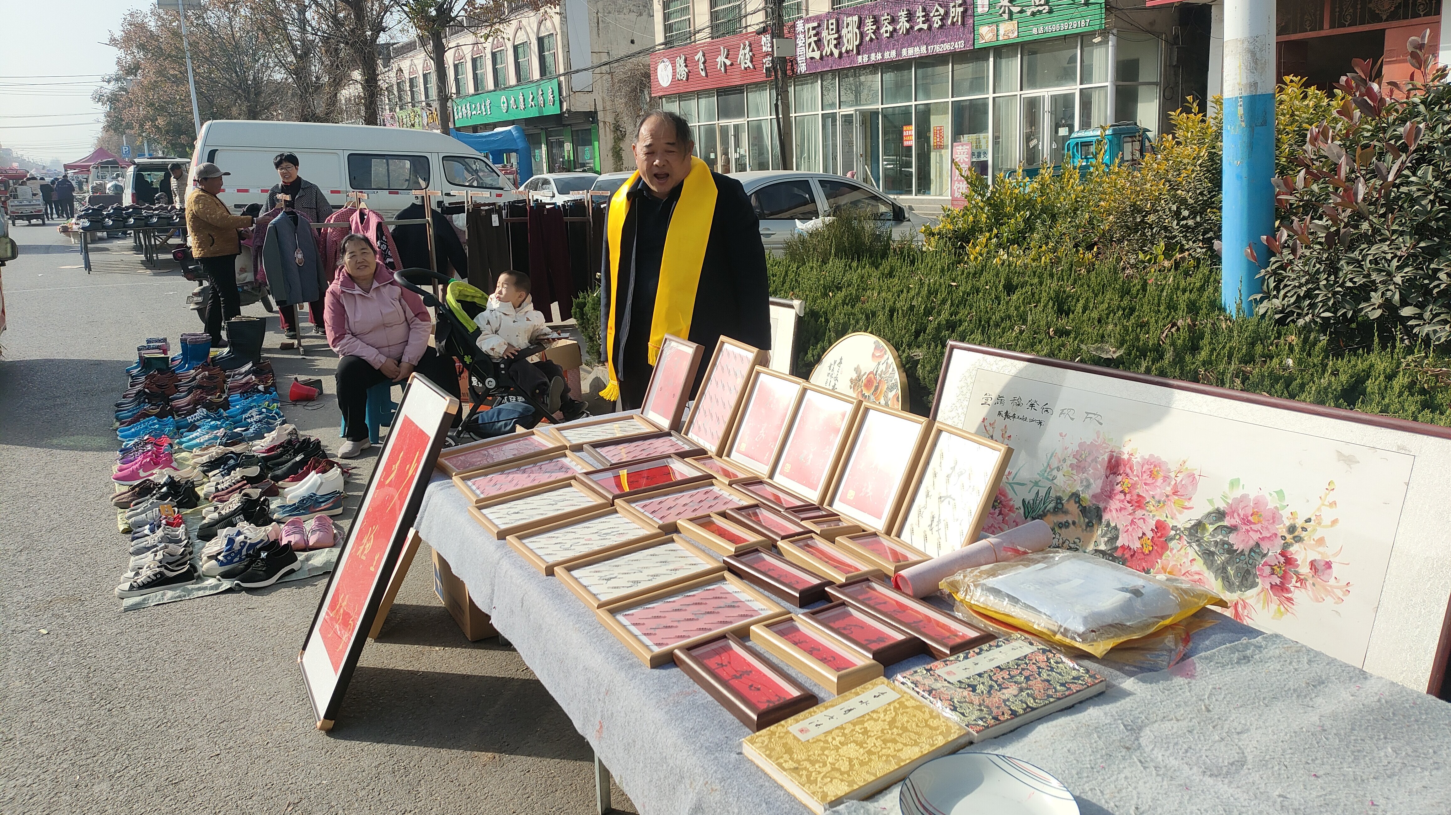 农历十月初九,新桥庙会热闹开市,由法书文化网精心组织的秋季书画展销会暨“书画进万家”活动同步启幕。这场集艺术交流、作品展销于一体的文化盛宴,吸引了众多市民与游客驻足,让传统书画艺术在庙会的烟火气中焕发新彩。