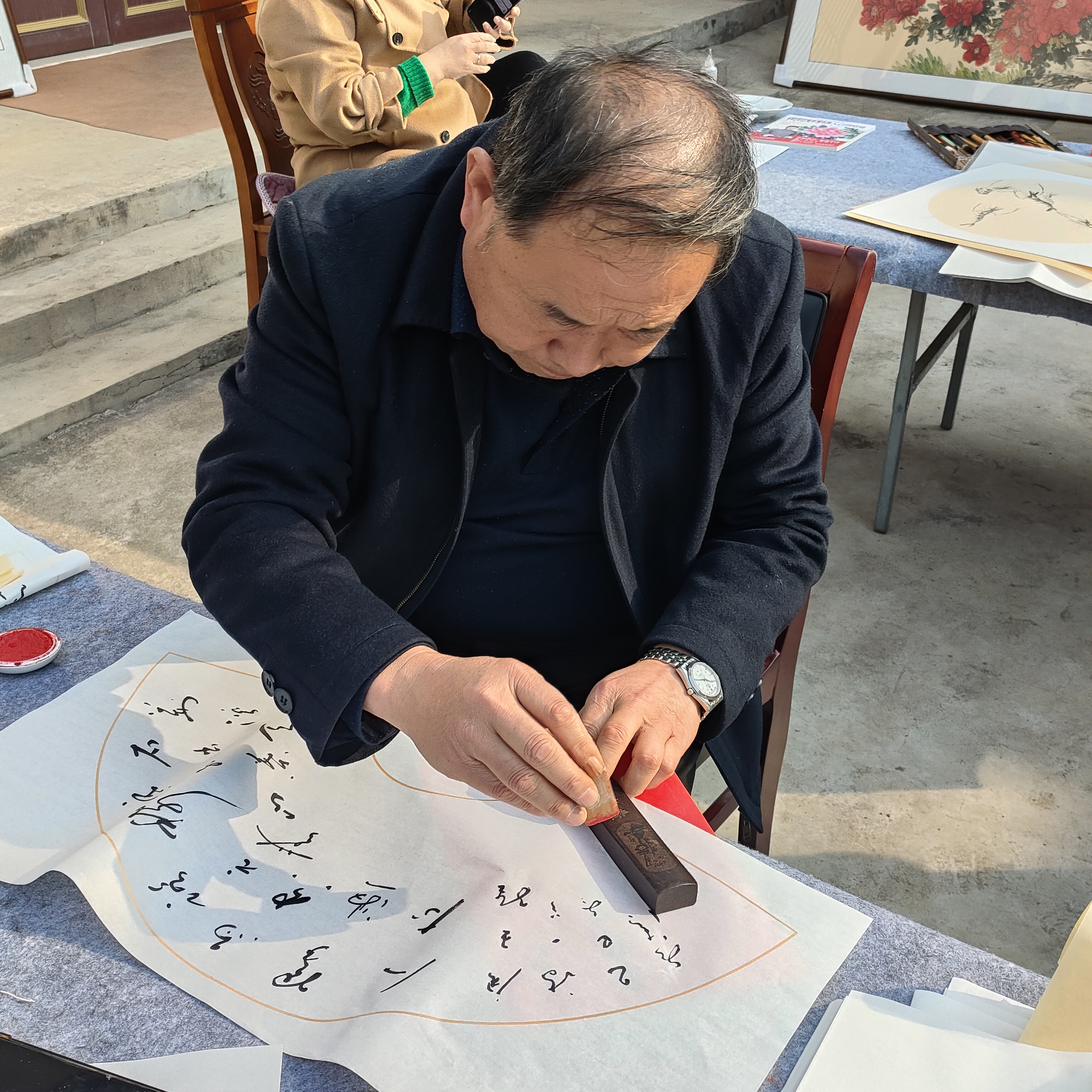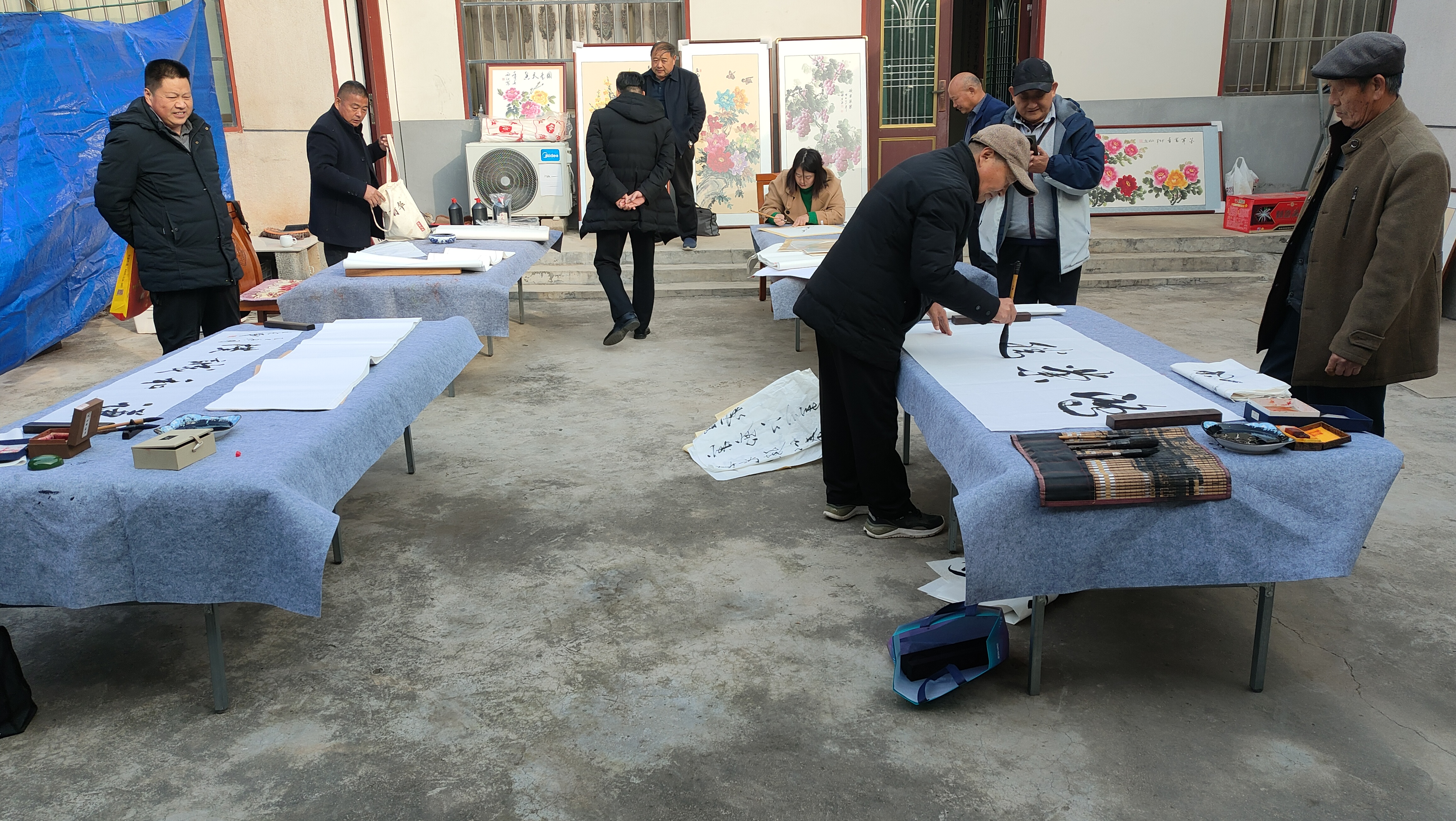 十余位参会书画老师现场挥毫泼墨、即兴创作,以笔为媒、以墨传情。书法作品或笔走龙蛇、气势磅礴,或娟秀灵动、韵味悠长;绘画作品涵盖山水、花鸟等多元题材,或勾勒细腻、意境悠远,或色彩明快、生机盎然,充分展现了传统书画艺术的深厚底蕴与创作者的艺术才情。创作间隙,老师们相互交流创作心得,分享技法经验,现场洋溢着浓厚的艺术研讨氛围。