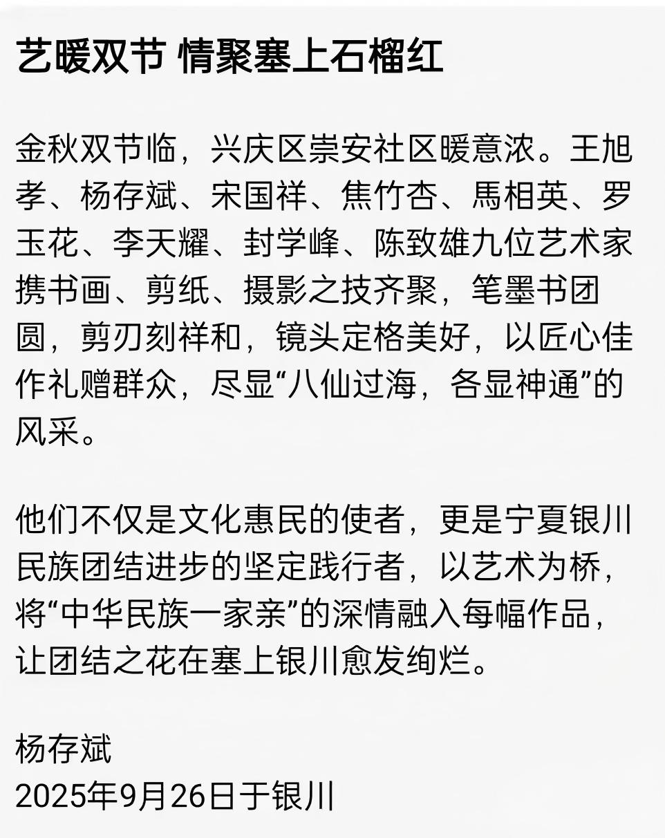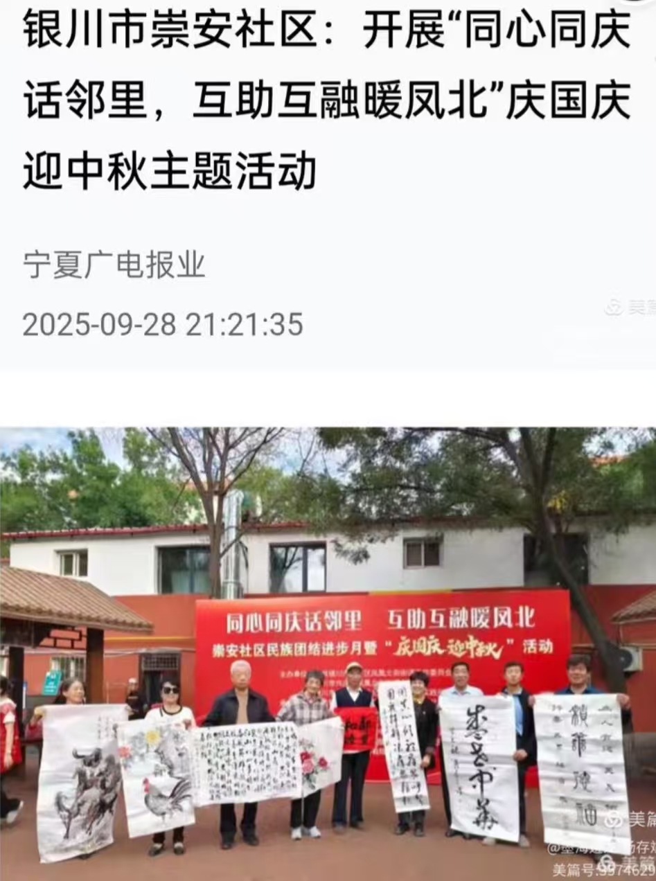 宁夏北塔书画院和法书文化宁夏分会参加由银川市兴庆区凤凰北街街道崇安社区主办的文化艺术庆双节活动