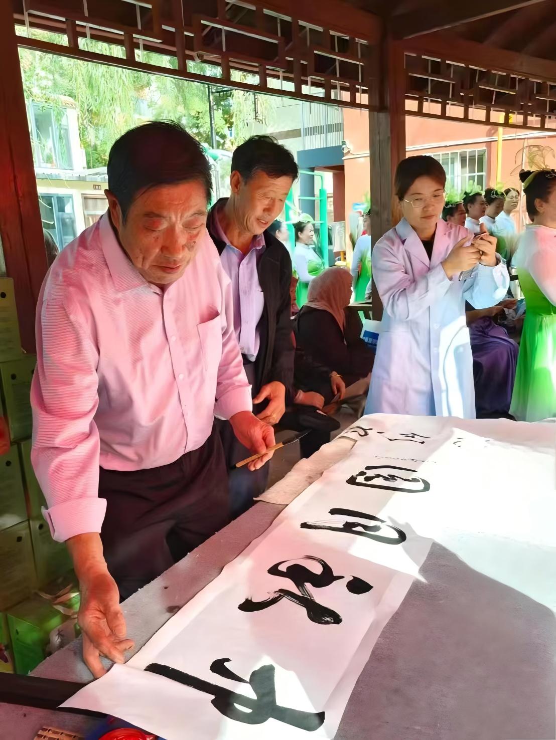 银川兴庆区崇安社区在9月26日,两节前夕,精心组织开展了一场盛大的“庆国庆,迎中秋"活动。崇安社区党委书记陈爱梅邀请了宁夏北塔书院院长杨存斌,中华法书文化理事会宁夏分会会长王旭孝携书画协会9名会员共赴盛会,现场创作赠送书画作品33幅,让书画艺术与节日氛围深度融合,在社区民众中体现传统文化魅力。
