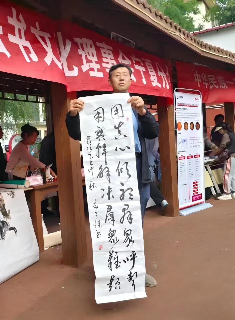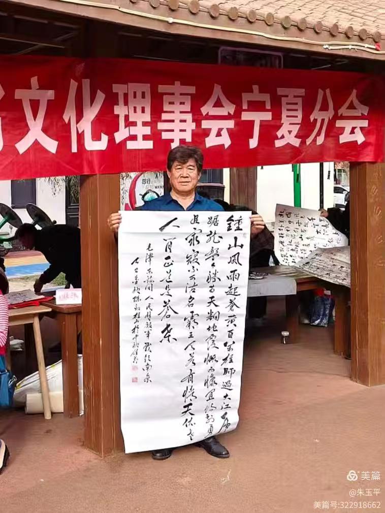 此时银川,天朗气清,贺兰晴雪映碧水,满城秋意伴花香,一城风光与翰墨书香相映成。在庆贺会场,人们载歌载舞,登台献艺,书画老师们也挥毫泼墨,把喜悦的心情,倾注于笔端,写出了激情,画出了美意,让这场双节活动更光彩流溢!